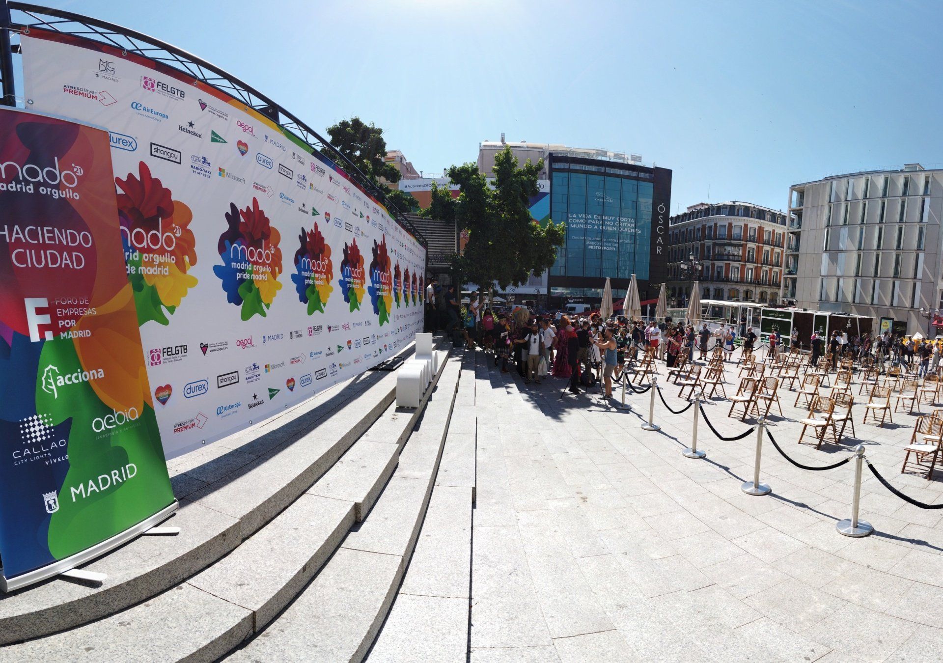 - Sonorizamos, producimos y gestionamos todo el protocolo Covid-19 que nos exigía el Ayuntamiento de Madrid para la celebración del tradicional Pregón que da pie a las fiestas del Orgullo.